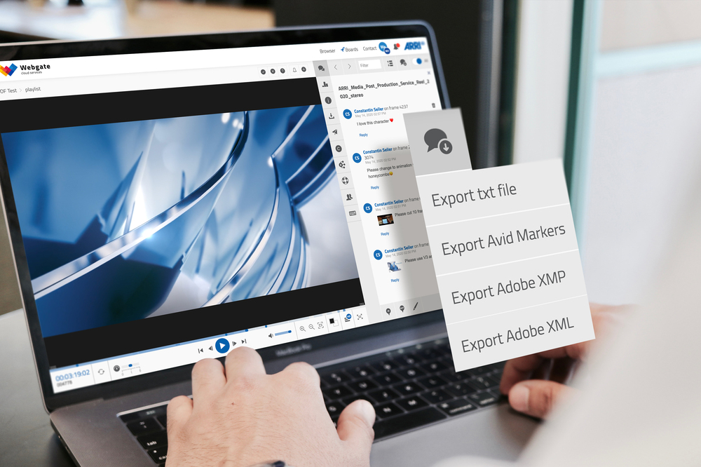 Also get an overview of all comment functions on videos in ARRI Webgate.